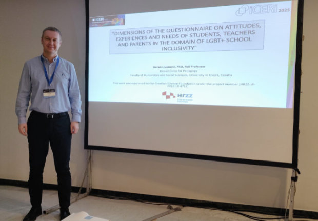 Doc. dr. sc. Zoran Horvat i prof. dr. sc. Goran Livazović sudjelovali su na ICERI 2025 18th annual International Conference of Education, Research and Innovation, održanoj u Sevilli od 10. do 12. studenog 2025. godine. Goran Livazović održao je izlaganje Dimensions Of The Questionnaire On Attitudes, Experiences And Needs Of Students, Teachers And Parents In The Domain Of LGBT+ School Inclusivity, a Zoran Horvat izlaganje Challenges In The Validation Of An Instrument For Quantitative Research On LGBT+ Inclusivity In Schools. Oba izlaganja, fokusirana na proces konstrukcije odnosno validacije upitnika za istraživanje stavova iskustava i potreba subjekata odgojno-obrazovnoga procesa u domeni LGBT+ inkluzivnosti, temeljena su na rezultatima pilot faze kvantitativnoga dijela projektnoga istraživanja.